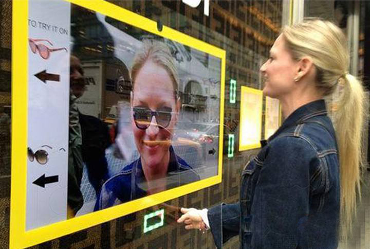 互動櫥窗設備可將圖像投射到商戶臨街玻璃櫥窗的普通玻璃上(所有互動櫥窗設備都放置在店內(nèi),畫面尺寸不限),顧客在店外隔著玻璃點擊圖像畫面,在店內(nèi)的互動櫥窗設備可感應到 ……